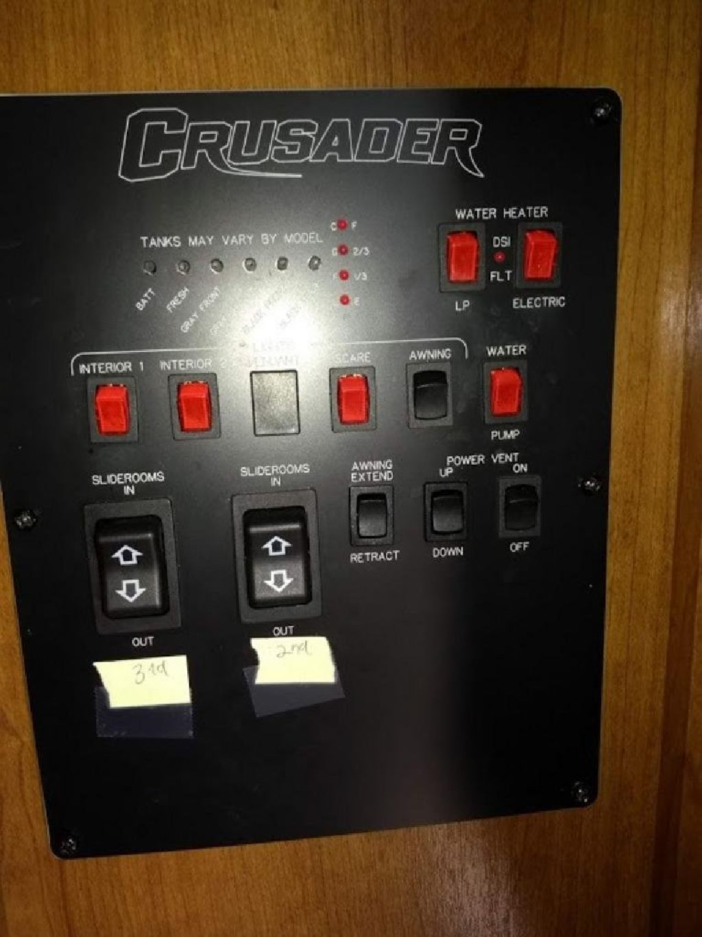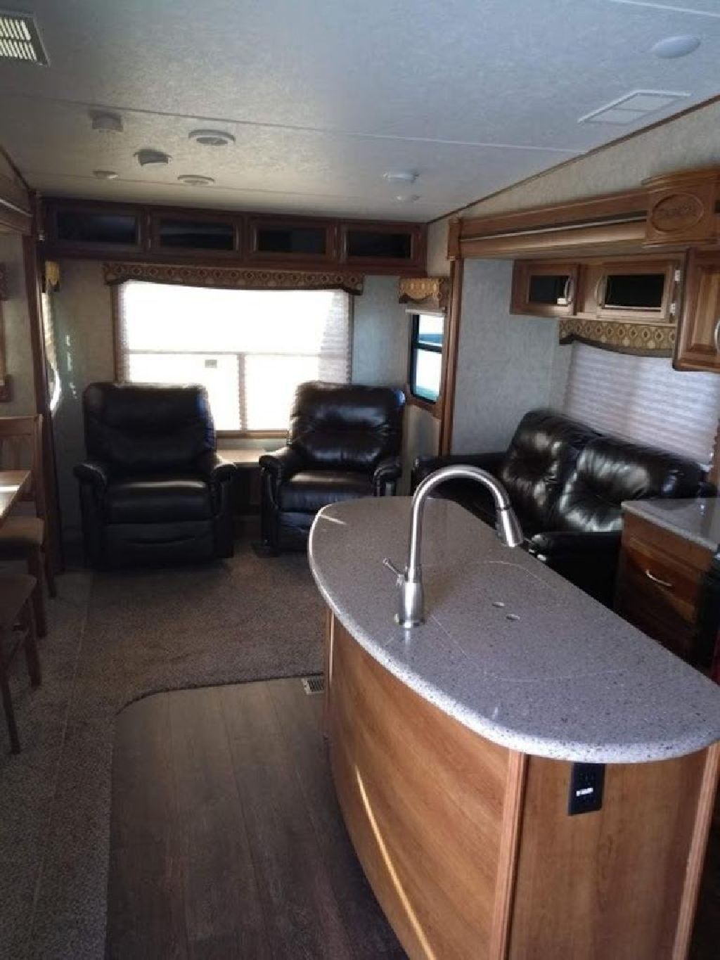 2016 Crusader is 29′ with 3 slides.Features include a cozy fireplace, chocolate leather furniture, island kitchen, pantry, plenty of storage. Just consigned at Fountain RV. SPECIFICATIONS
